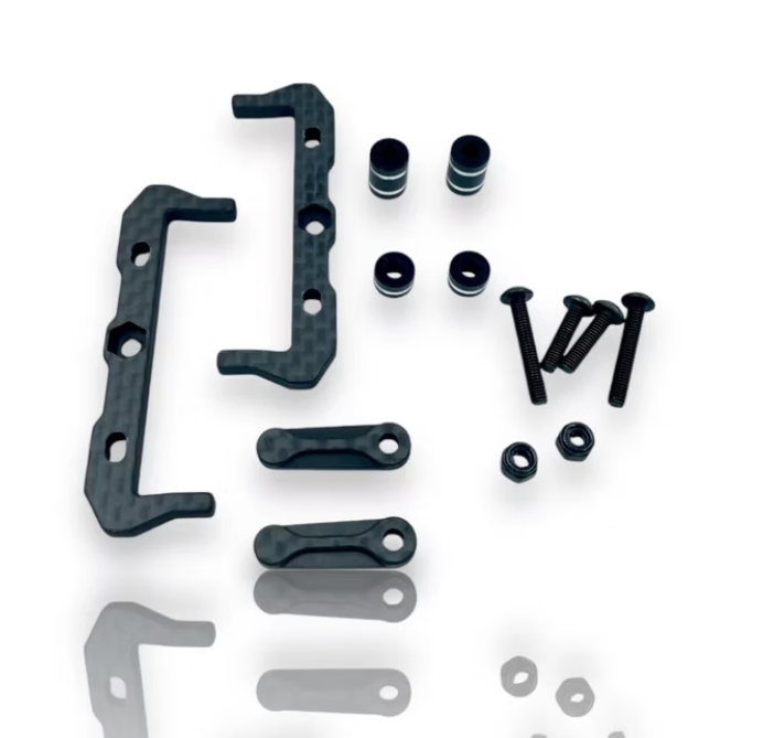 The J&T battery hold down system for the Team Associated B7 is a thing of beauty. Machined from high quality carbon fibre designed to hold your battery securely in place. The anodized spacer system allows standard, and LCG shorty batteries to be ran all in one system while also lowering the centre of gravity compared to the stock battery strap system. Our system will also shed approximately 4 grams off your total weight when compared to the stock system. O-rings? Who needs O-rings!