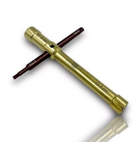 The J&T Grip Tight Glow Plug wrench features a 8mm end for installing and removing glow plug. A 10mm end for installing and removing applicable clutch flywheel nuts. On the tee handle a 3mm as well as a 5mm allen for further convenience in one tool. Not to mention the color sets it apart from the competition.