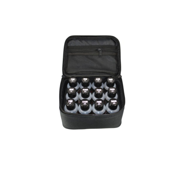 The new MR33 oil bag presents the new MR33 logo and comes with a foam insert which makes the transport of shock oil as easy as it was never before! The insert has 12 openings which allow you to stow most of the common oil bottles in the bag (such as MR33 and Hudy for example). You can stow some documents or small parts in the top cover`s zipped area too. It is a great bag so get it now quickly!