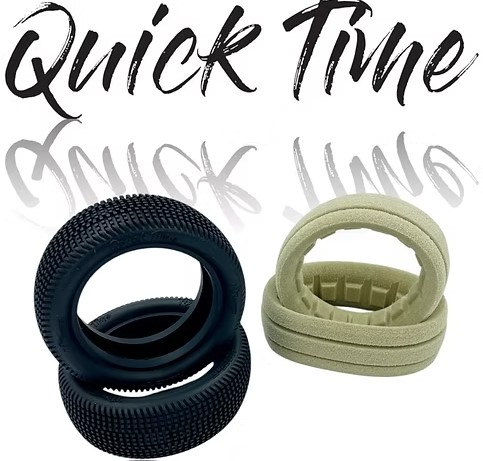 The Quicktime tire was designed to work on both loose dirt ovals as well as outdoor off-road tracks. We took some pin layout ideas from our 1/8 MIG tire as well as our extensive background in full scale dirt oval racing to come up with the design of the Quicktime tire. The inline center pins provide maximum forward drive, while the outer rows of pins are off set from the center pins to help the tire slide when needed in the corners. The aggressive long pins on the outside of tire provide the grip you have always wanted!